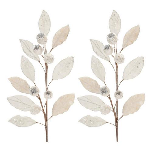 Melrose International 29.5in White Leaf Spray (Set of 2)