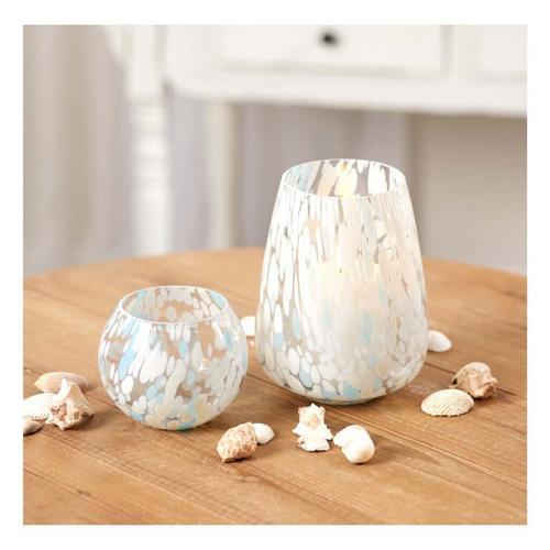 Bring a touch of coastal charm to your home with the Painted Glass Candle Holder Vase Set. Featuring cool blue and white tones with an abstract painted design, these holders add a chic aesthetic to any space. With a clear finish and versatile design, they are perfect for holding pillar or votive candles, or can be used as vases to display fresh flower stems. Sold in a set of four, these holders elevate any room with their stylish, multi-functional design.