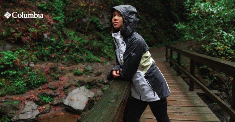 a man hiking in a water repellent jacket