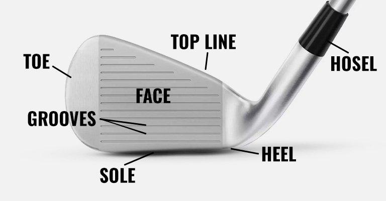 The head itself contains these essential components, which apply to every club—driver, iron, or wedge: