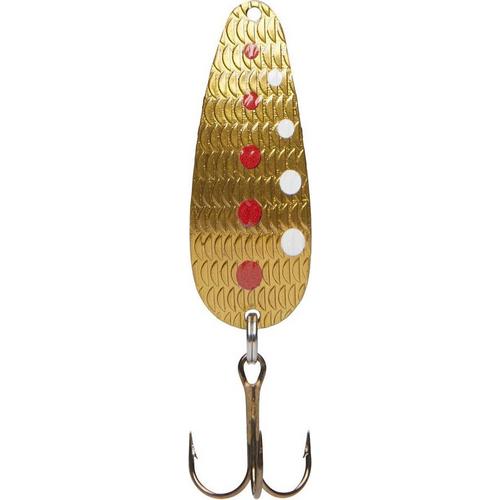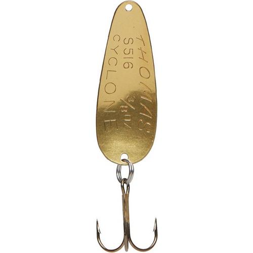The Thomas Cyclone has been an angler favorite in the world-famous trout waters of the American west for 50 years. It is extremely effective for trout, and many other types of game fish, in any freshwater. This wobbler-type spoon is made of solid brass with a highly reflective embossed surface. Jewelry-quality plated and durable painted finishes, combined with this embossed surface, creates an irresistible flash. Made in the U.S.A.