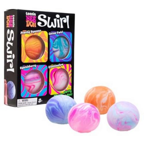 The NeeDoh Teenie Swirl Squeeze Toy 4-Pack brings colorful swirl designs together with classic squishy fun. Each mini squeeze toy features a smooth outer shell and soft, dough-filled center that delivers satisfying sensory feedback with every squeeze. Their compact size makes them perfect for stress relief, fidgeting, party favors, or on-the-go play.