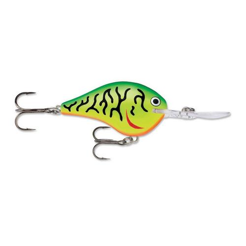 The Rapala DT Dives To Crankbait will dive fast to a preset depth and stay in that strike zone longer than other crankbaits. Made from balsa wood and featuring strategically places internal weights, the Rapala DT creates the ultimate crankbait action, while the ultra-thin polycarbonate lip helps dig the bait down quickly to the correct depth. Ideal for long casting up to 150 feet the Rapala DT stays in the strike zone for longer periods of time. Additional features include VMC® black nickel hooks, premier finishes in a variety of color patterns, and an internal baritone rattle for reliable sound performance.