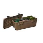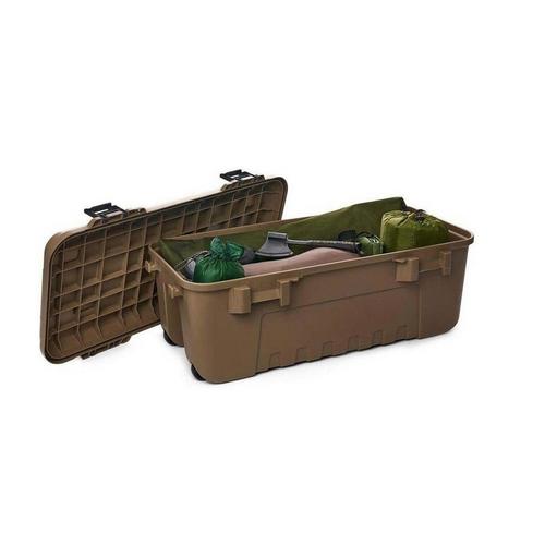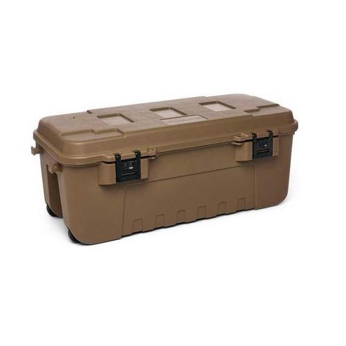 Conveniently store and transport all your hunting and outdoor gear in one convenient location. This high-impact plastic trunk is our largest available -- 108 quarts total capacity. The fully removable lid fits tightly on the base and clamps down in place with heavy-duty latches. The bin also features padlock tabs for added security. Grab as many as you need; these trunks are specifically designed to stack with multiple units.