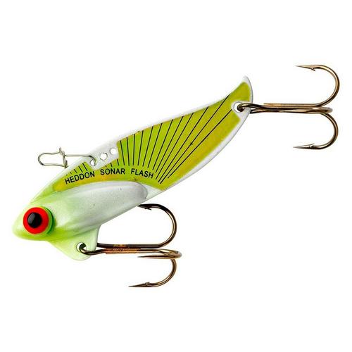 The Heddon Rattling Sonar Flash is as versatile as any lure you'll find in the fishing industry. The Rattling Sonar Flash features three line-tie holes each positioned for a different fishing technique. Tie your line to the front hole for casting and fishing shallower water. Tie to the middle hole for vertical jigging. The third hole is for trolling or casting to deeper water. The Rattling Sonar Flash adds sound to this already effective vibrating blade bait.
