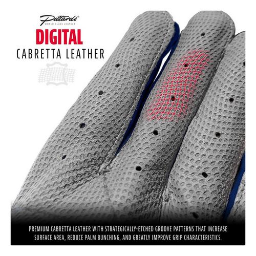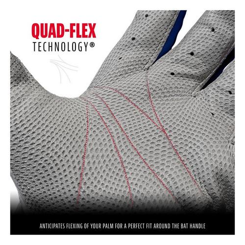 These batting gloves offer a superior feel that is complemented by unique, tectonic-fit insert flexibility. The world-class quality, one-piece digital-texture sheepskin leather palm maintains softness and superior grip in all conditions while the digital leather provides strategically etched grooves to reduce palm bunching and improve grip. These gloves are a must have on the diamond this season!
