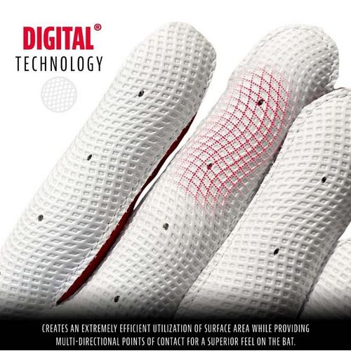 Franklin's Digitek series is a superiorly flexible, multi-functional glove with an athletic fit, feel, and look. With a durable leather heel patch and a touch of digital camo flair, you can be sure to count on this glove for game-time performance.
