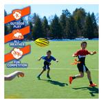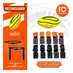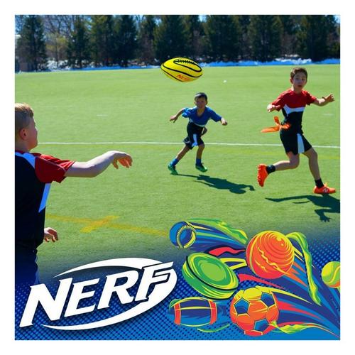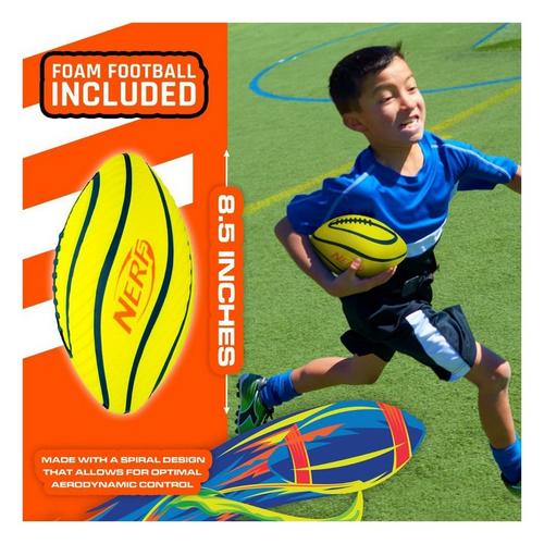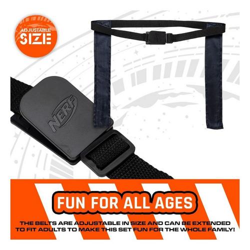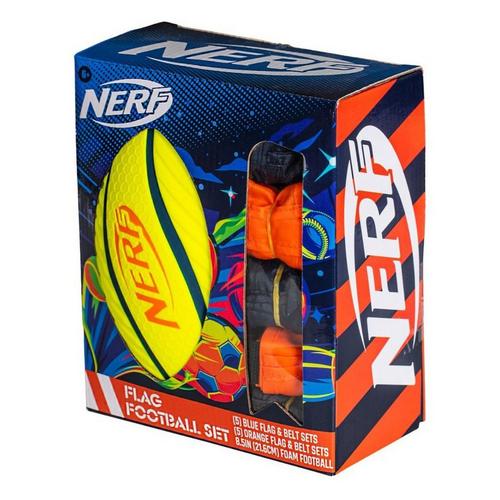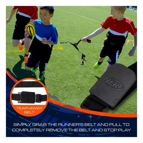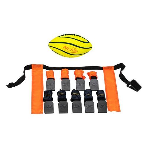 Become an all-star flag football player with the NERF 5 v 5 Youth Flag Football Belts + Football Set! This flag football set is the perfect all-in-one kit to help kids learn the game and have a ton of fun at the same time! With 5 orange flags and 5 blue flags, this 10 player set lets you easily divide into teams and start playing. The included NERF youth 8.5" foam football has a unique textured surface to give you the ultimate grip that is made for any skill level. The tear-away belts are also adjustable size so kids of all ages and sizes can get in on the game. Turn your backyard into a football field, and get the flag football fun started today!