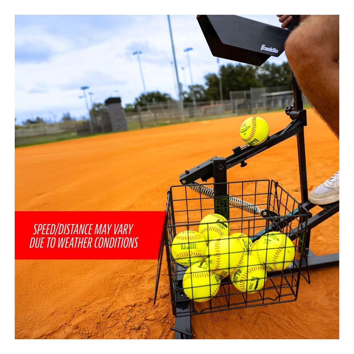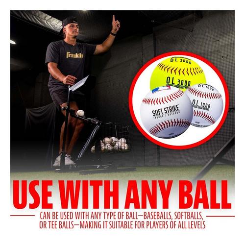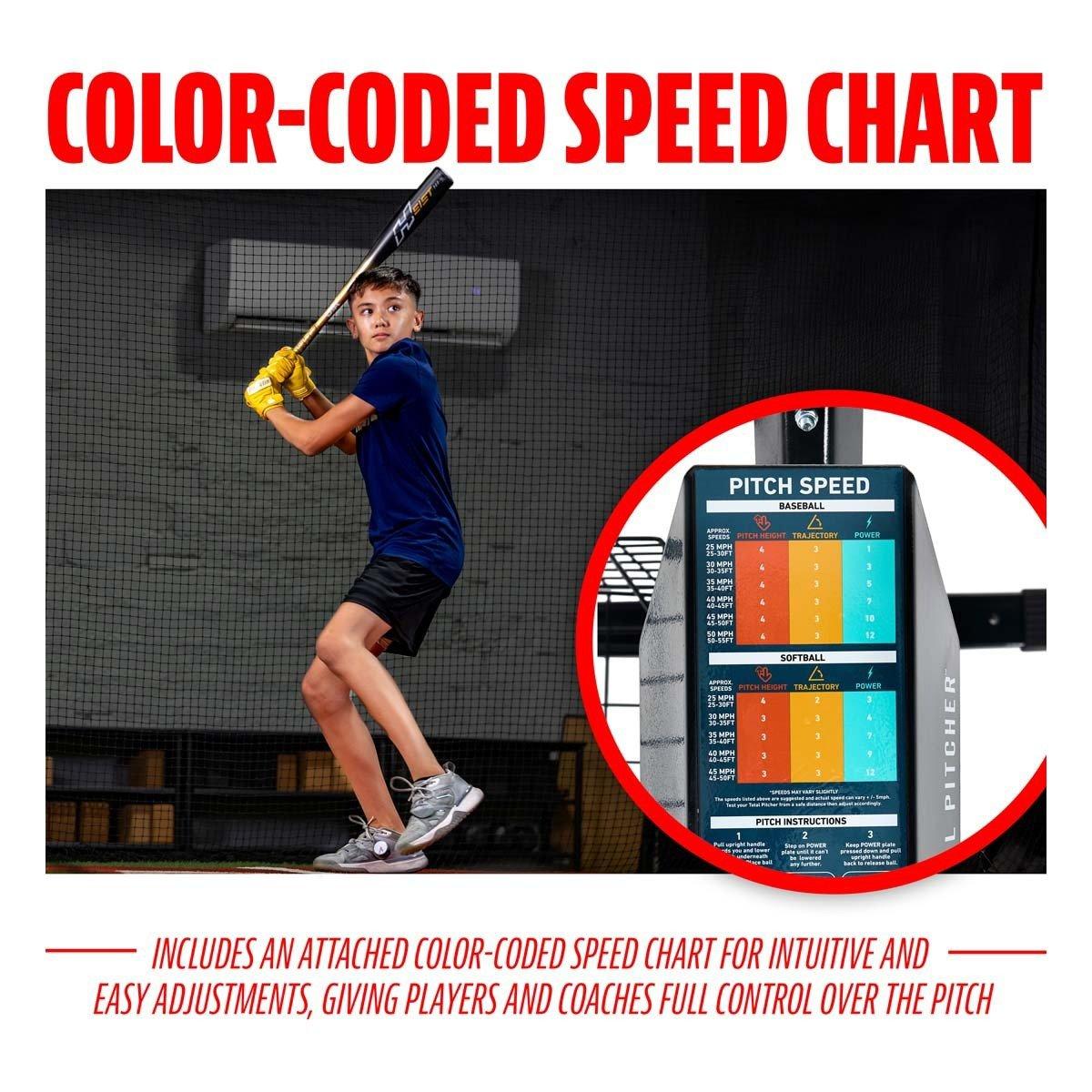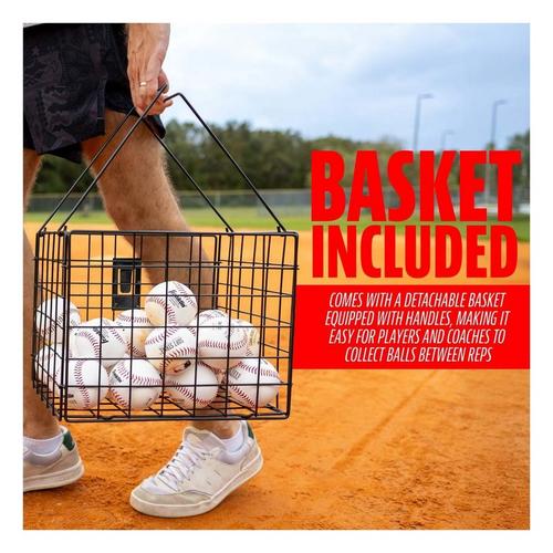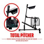 Elevate your baseball or softball game with the Franklin Sports Total Pitcher, the versatile training tool designed to help players of all ages practice improve both their hitting and fielding skills. Whether you're refining your swing or enhancing your defensive mechanics, the Total Pitcher is your go-to equipment for achieving real-game results in any setting. Compatible with baseballs, softballs, and teeballs, this machine allows players to practice anywhere—from the backyard to the batting cage, with no batteries or electricity needed. This spring-powered pitching machine uses a foot activated pitching mechanism to launch the ball for batting and fielding practice. The Total Pitcher features three key adjustable settings—pitch height, trajectory, and power—letting you fine-tune pitch speeds and angles for realistic, game-like conditions. Each adjustment is marked with clear instructions and color-coded parts for the throwing arm, power pedal, and pitch handle, making it easy to achieve the exact pitch conditions you want. With the ability to throw pitches at a range of speeds, you’ll feel like you're facing a real pitcher but with the freedom to adjust the difficulty level as you improve. For fielding practice, simply change the launch trajectory for ground balls or pop flies. The base leg is adjustable for inside and outside pitches, and also helps fielders work on forehand and backhand drills. The included detachable basket with handles makes collecting balls between reps easy, and the ground stakes provide added stability for practicing anywhere. Whether you’re working on your swing or defense, the Total Pitcher is the perfect baseball and softball training aid to elevate your skills to the next level. Grab your Franklin Sports Total Pitcher and get in the game today!
