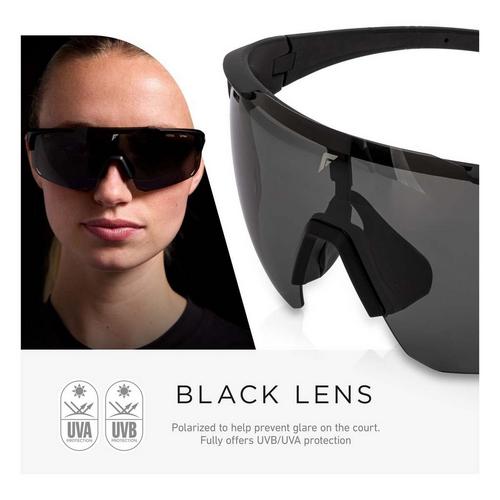 Black Lens: The black lens is polarized to help prevent glare on the court. Fully offers UVB/UVA protection.