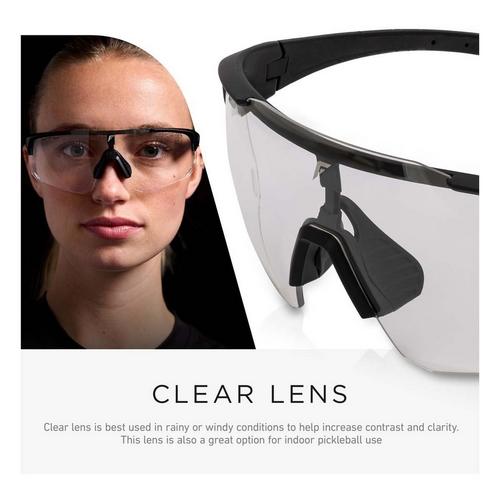 Clear Lens: The clear lens is best used in rainy or windy conditions to help increase contrast and clarity. This lens is also a great option for indoor pickleball use.