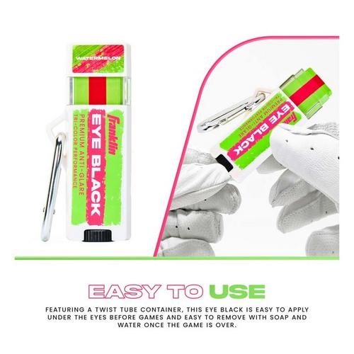 Keep your eye on the ball whether you're on the baseball diamond, softball field, football field or anywhere else with Franklin Sports' Premium Eye Black Sticks! This premium quality eye black stick is designed to help baseball, softball, and football players reduce glare from the sun and stadium lights to help them track the ball in the air. This simple to use eye black can be used by anyone and is easy to apply and remove. For best results, apply a thick band of eye black just below the eyes to help reduce glare and brightness for improved visibility. Eye black is perfect for athletes to combine performance and style. Shape your eye black to complete your gameday look while you keep the light out of your eyes. Available in a variety of colors, Franklin Sports' eye black can be used to match any uniform for a complete gameday look. Grab your Franklin Sports Premium Baseball, Softball + Football Eye Black Stick today, so you can play your best when the lights shine bright!
