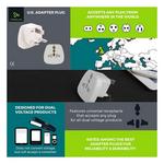 On your next trip to the United Kingdom, adapt your US plug devices that are rated 110v-220v, which includes most modern electronics like cell phones, laptops, and tablets. It can be used in any country with the A configuration, so you’ll be able to use it across many parts of Great Britain and Africa.