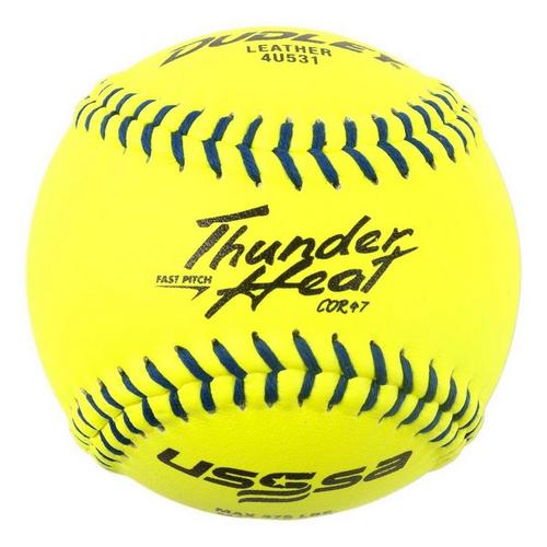 The Dudley Thunder Heat 11” USSSA Fastpitch Softball is the perfect tool to increase your performance on the diamond. The ultra-durable cover and low seams provide superior grip and control, allowing you to put the ball exactly where you want it. The Thunder Heat is designed specifically for fastpitch softball, and is approved for play by the USSSA, so you can take it to any diamond and feel confident that you're playing with a top-of-the-line ball. Step up your game with the Dudley Thunder Heat 11” USSSA Fastpitch Softball and hit it out of the park!