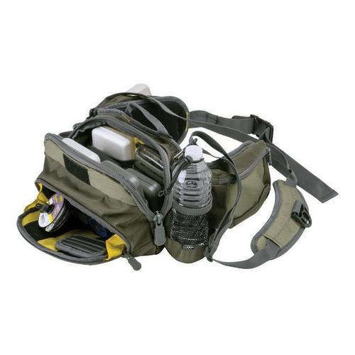 Pack is great for fitting terminal tackle, up to 4 traditional storage, tackle, or fly boxes (including Plano StowAway boxes) in the large, main compartment—front pocket zips-down for use as a workstation, able to hold a fly dryer and two fly or tackle boxes. Quick access to the fishing gear you require can be held securely in the two hip pockets while two water bottle holders, with elastic, cord-lock adjustments, allow for proper hydration for a day in the field.