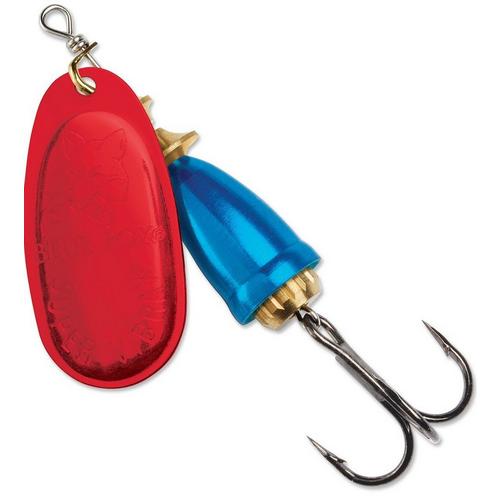 The Classic Vibrax gets a tasty candyback! Colored bell is accented with metallic flecks. Blade is tipped in matching color, while blade back is finished with transparent, fluorescent coordinating color. Flaw-free silver plating, fine tolerances and super-sharp hooks are long-standing features of this low frequency emitting patented two-part body spinner.