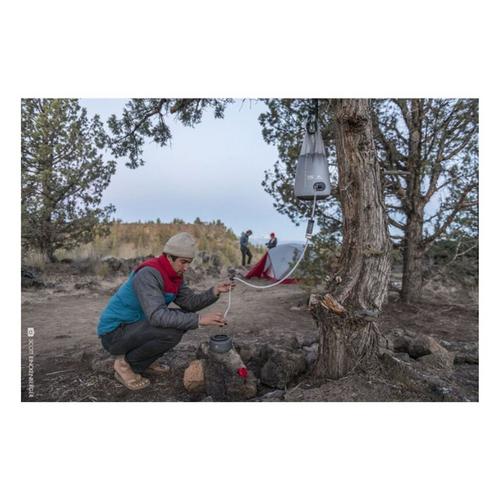 This extra-large AutoFlow gravity filter system delivers 10 liters of clean water fast—all while you set up camp, prep dinner or relax. And its big capacity means fewer trips to the river to haul the water you need. Similar in packable size to a 4L system, the AutoFlow XL system's durable flat base doubles the water volume for only 340 g (12 oz) of total weight. Ultralight and supremely packable, it offers the luxury of pump-free group filtration for basecamps, scout troops, horsepackers and other backcountry groups. And just one 10-liter fill of the reservoir can supply 1-2 people with a whole day’s worth of clean water.
