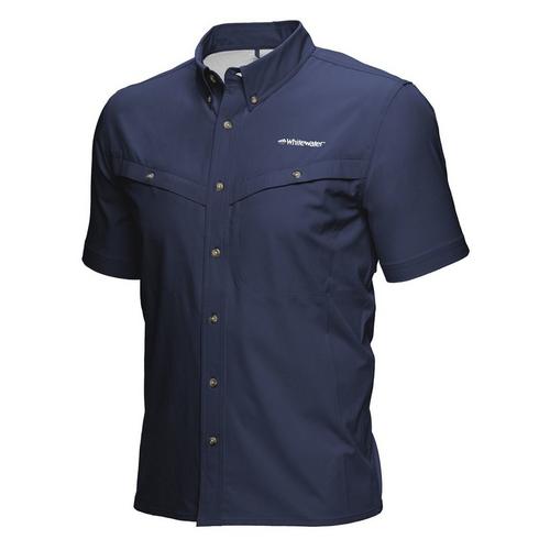 Our short sleeve fishing shirts are constructed with a lightweight poly-spandex blend and moisture-wicking material to keep you cool, calm, and collected for the moment that counts. The poly-spandex blend creates comfortable, flexible, wrinkle-resistant fabric for easy care on the go. With protection from UV rays, all you need to worry about is landing that fish with our Men’s Whitewater Rapids Fishing Shirt.