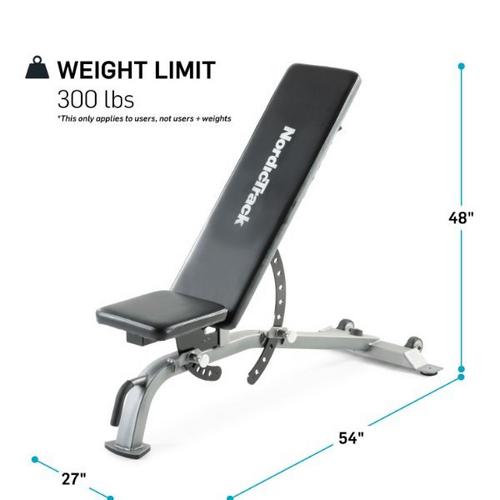 The NordicTrack Adjustable Weight Bench allows you to target a variety of muscles in your upper and lower body for a comprehensive and challenging workout in the privacy of your home. Easily adjust your weight bench from a flat to incline or military position to develop and tone your shoulders, upper chest, and triceps.