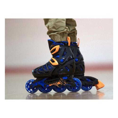 Tracer inline skates adjust up to 3 sizes to keep up with growing feet. Small adjusts from size 12 to 1, and Medium adjusts from 2 to 5.These inline skates for kids are easy to put on and take off, so children of all ages can get rolling easily. Good ankle support, important for beginning skaters. The Comfort Fit liner is washable to help keep skates fresh. Urethane wheels have the right grip and bounce for rinks, floors, sidewalks, or pavement. Size small has 64mm wheels, while the mediums include 70mm wheels. They are loaded with smooth rolling GForce carbon bearings. These skates fit true to your child's shoe size.