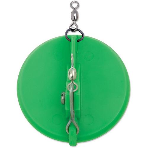 The special round shape and resulting multi-directional feature sets the Dipsy Diver® apart from all other divers and planers. A shift left or right, as indicated on the base plate, will cause the diver to track to port or starboard, allowing for large spreads of lures to be fished from a single boat. You'll cover more water when the Dipsy Divers are deployed. The adjustable trip mechanism can be set specifically for various lure sizes and the size of target fish.
