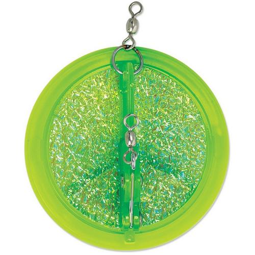 The special round shape and resulting multi-directional feature sets the Dipsy Diver® apart from all other divers and planers. A shift left or right, as indicated on the base plate, will cause the diver to track to port or starboard, allowing for large spreads of lures to be fished from a single boat. You'll cover more water when the Dipsy Divers are deployed. The adjustable trip mechanism can be set specifically for various lure sizes and the size of target fish.