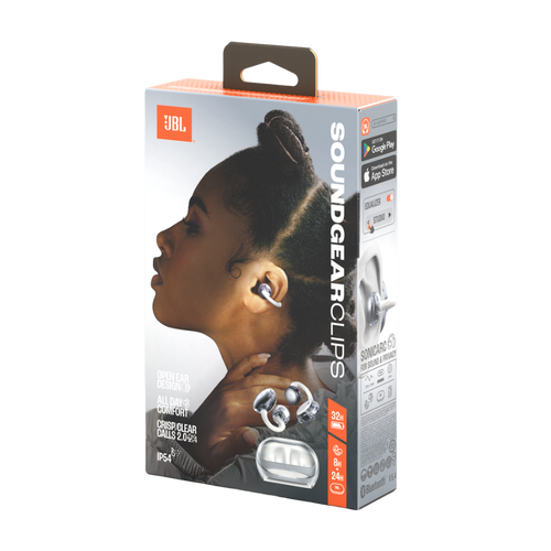 JBL Soundgear Clips open-ear headphones not only deliver great JBL sound, they also don't block out the sounds happening around you. Their all-day comfort and stability stand out, just like their on-trend looks in fashionable colorways with premium translucent finishes. JBL OpenSound Technology with Air Conduction and the SonicArc design for minimal sound leakage and enhanced bass performance mean the low end always sounds full and punchy without distortion, to your ears only. Plus, the four voice mics technology and our proprietary AI-trained algorithm for noise reduction make sure you'll always sound great, even on a blustery day. And if a little drop comes along, JBL Soundgear Clips boasts an IP54 rating. Use the JBL Headphones app to personalize how your calls sound. JBL Soundgear Clips are a wearable icon in the making.