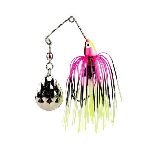 The Mini King will catch them all. Cast it out and crank it back! You will love this little guys aciton and success! Cast it on even the lightest gear! For decades, the MINI-KING Spinnerbait has been the most popular small spinnerbait for lighter rods, smaller fish, pressured waters and newcomers to fishing because it works so well and gets lots of bites. It has a "safety pin" wire so your knot or line clip won't slip out of position, a Coloarado diamond blade for flash and added pull (versus a willow blade) which helps your line lay better on the typical reels used with these lures. A Diamond Dust Silicone Skirt and Paint job, and a good hook. All this makes the Strike King MINI KING the king of mini spinner baits.