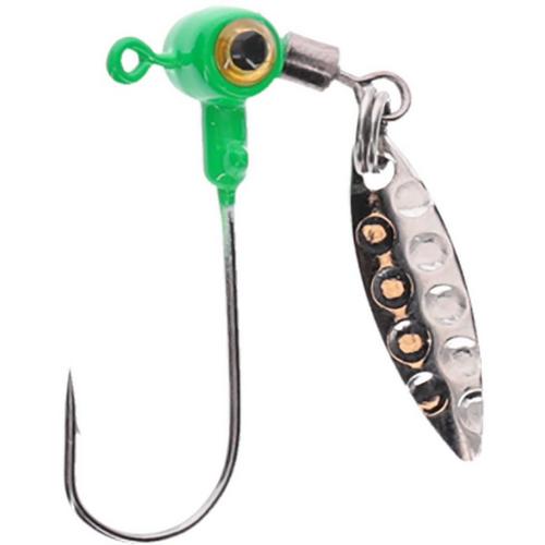 Strike King’s Mr. Crappie Sausage Head Spin is a jig head for soft plastic baits, featuring unique head designed to deflect off brush and fish in heavy cover without hang-ups. The head features a 3/4-inch hammered willow leaf blade that spins when retrieved or jigged vertically. The hook features a Quick-Stick hook keeper to ensure plastic baits stay firmly attached while fishing or fighting fish. Built with distinct, eye-popping colors and explosive designs that entice fish and attract more strikes.
