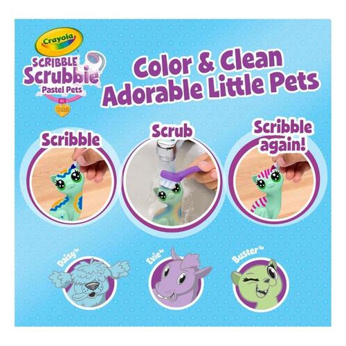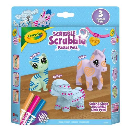Introducing the latest Scribble Scrubbie addition—Scribble Scrubbie Pastel Pets! This delightful toy lets kids draw and color on their cute and cuddly pets, then wash them clean and start the fun again. The set includes 3 washable markers and a scrub brush, featuring Daisy the Dog, Evie the Pony, and Buster the Cat. The fun continues as kids can collect more Scribble Scrubbie pets with additional expansion packs (sold separately) to expand their creative play. This set is an excellent gift for kids who love animals and art, promising hours of imaginative fun and creativity.