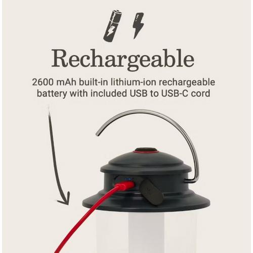 Save money on disposable batteries and take the water-resistant Classic Rechargeable 400L LED Lantern anywhere you need extra light. The integrated lithium-ion rechargeable battery charges from any outlet so you won't have to worry about needing fresh batteries. You'll know it's fully charged when the LED indicator turns green. Once charged, this lantern shines 400 bright lumens more than 12 meters on its high setting. With a runtime of up to 5 hours on high and 20 hours on low, the sun will come up long before you need to recharge. The LED lasts a lifetime, so it never needs replacing and it runs cool so it's always safe to touch, even when it's been on for hours.