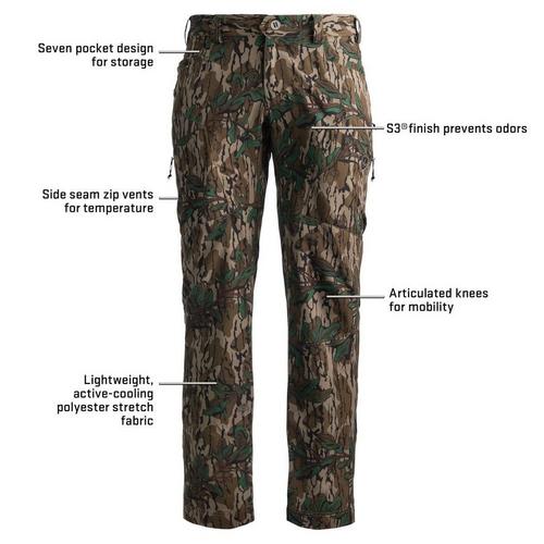 The Finisher Lightweight Turkey Pant stands as your new everyday essential for turkey hunting. Crafted from lightweight stretch poly and spandex, this pant balances durability with exceptional stretch. Specifically designed for warmer spring temperatures, this pant is constructed to allow layering for colder weather and offers zip hip vents for warmer conditions. With the added benefit of our S3® Anti-microbial treatment, these pants remain odor-free even after prolonged use in the field, ensuring lasting freshness despite multiple days of wear.