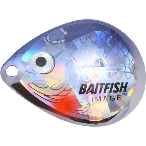 Proven to consistently catch walleyes, jumbo perch and other gamefish. Deeply cupped, slow-revolving design produces maximum flash, sound and vibration to attract predators in all conditions. Choose “holographic” Baitfish-Image® color patterns to mimic preferred forage. Great for use with spinner rigs, spinnerbaits and blade baits.