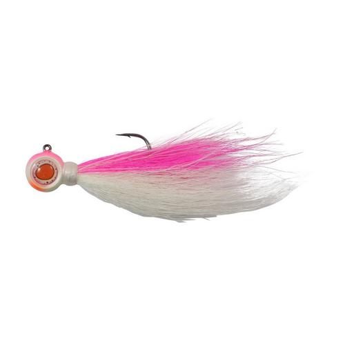 The Deep-Vee Bucktail Jig sports a keeled “DEEP-VEE” design that’s thicker on top and thin on bottom to track straight and fall fast. It also features large eyes that exude a “match-the-hatch” realism. Dressed with bucktail on the back end this jig can be fished by itself or with your favorite type of live bait or plastics.