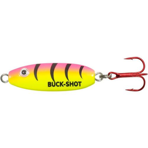 The Northland Buck-Shot Rattle Spoon Lure is the ultimate tool for anglers seeking incredible catches in both open-water and ice fishing. Crafted from durable metal, this minnow-imitating jigging spoon attracts fish from afar and entices them to strike with unique features. Its aggressive lift-fall action, noisy brass rattle, and highly reflective body make it deadly year-round for vertical jigging a variety of species, including perch, walleye, trout, bass, and pike. Whether used alone or tipped with live bait, the Northland Buck-Shot Rattle Spoon Lure ensures increased visibility and success in hooking trophy fish.