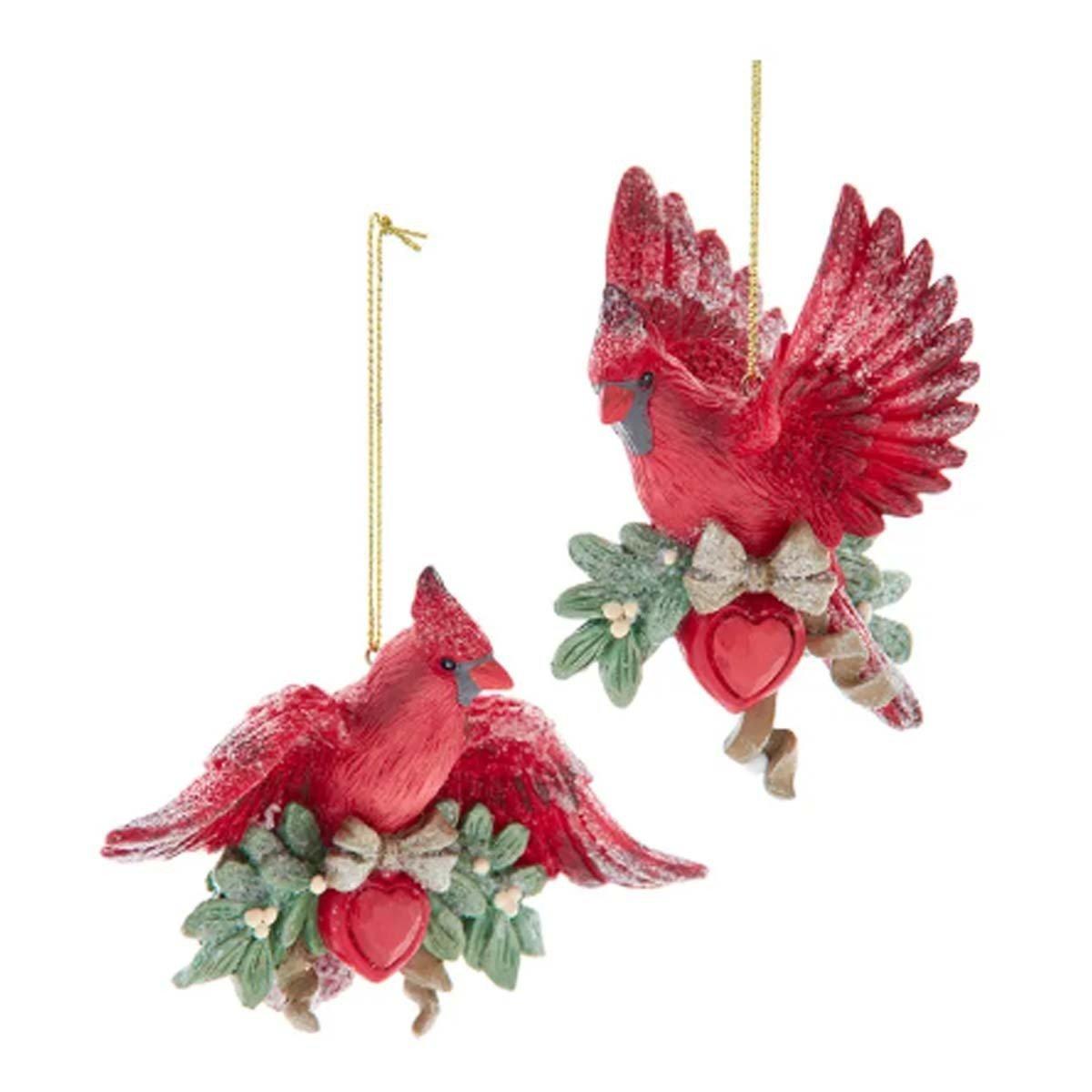 Kurt S. Adler Mistletoe Cardinal with Red Heart Ornament (Styles May Vary)
