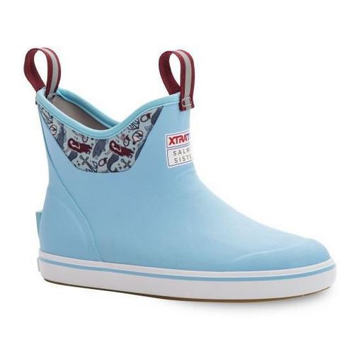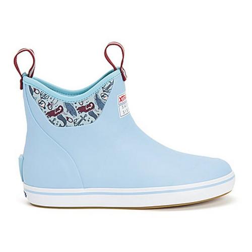 The Women's Xtratuf Ankle Deck Rain Boots aren't only a fashion statement on a rainy day or when out fishing—they're functional too! Made from durable materials, the Women's Xtratuf Ankle Deck Rain Boots are 100% waterproof so your feet stay warm and dry no matter the weather conditions. The lightweight design makes them easy to walk in, while the chevron outsole provides plenty of traction to offer slip resistance. Additional features include pull-on tabs and a XpressCoolTM lining for easy on and comfort all day long.
