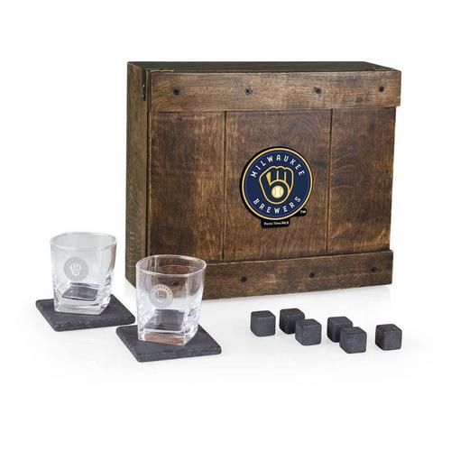 Picnic Time Milwaukee Brewers Emblem Whiskey Box Gift Set