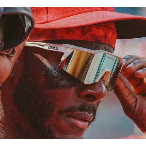 Featuring 100Percent’s proprietary HiPER® lens technology to enhance contrast and depth-of-field through so you, like Elly, never miss a moment. With a topaz mirror lens delivers a burst of brilliance with each pair receiving a unique green splatter graphic over a polished white frame to turn heads on and off the field.