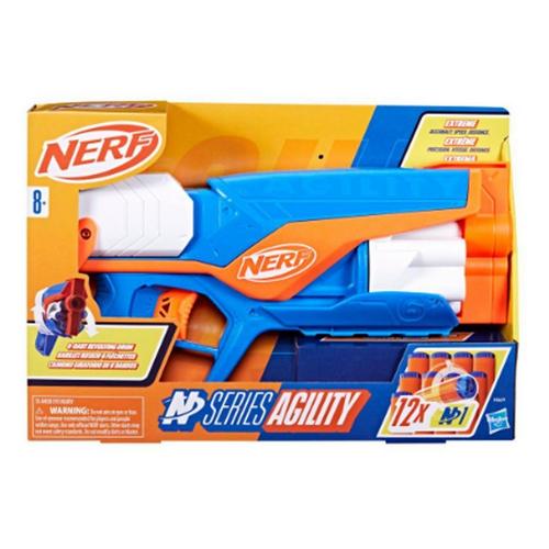 The Nerf brand levels up your game with high-performance Nerf N Series dart blasters and Nerf N1 darts! You have the skills as a Nerf battler, now you have the blaster and darts to gain a superior edge in indoor and outdoor play. From the creators of the foam dart, the Nerf brand unleashes the next evolution in foam dart blasting with Nerf N Series N1 darts, delivering EXTREME ACCURACY, SPEED, and DISTANCE! The Nerf N Series Agility dart blaster is built for games in which the action never stops and neither do you! Lightweight, compact, and simple to use, it's a great blaster essential for your Nerf stockpile. The Nerf N Series Agility blaster has a rotating drum with 6-dart capacity, includes 12 Nerf N1 foam darts, and has pull back priming. To play, load darts into the drum, pull back the priming slide, and pull the trigger to fire a dart. Nerf N Series blasters are compatible only with Nerf N Series N1 darts. Eyewear recommended (not included).