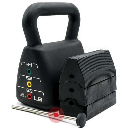 Up The Weight. Increase the weight with the Pro 35 to 62lb kettlebell. Build functional strength and work in cardio with a kettlebell that changes weights based on your needs. Heavyweight is great for functional movements like deadlifts, swings, and cleans. The heavy-duty selector pin helps make the transition between weights quick. When kept at a consistent pace, your kettlebell workout can help you build strength and muscle while burning calories equivalent to a run. The kettlebell is a great way of building unilateral strength. Using a single arm or leg to swing and stabilize helps build strength on both sides of the body. The Pro 35-62lb adjustable kettlebell helps build posterior chain strength during movements.