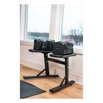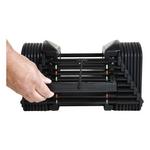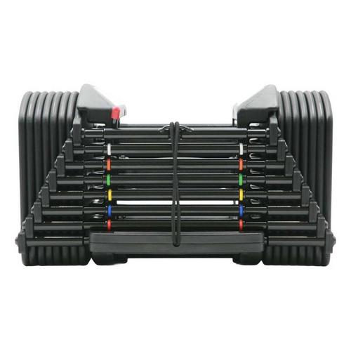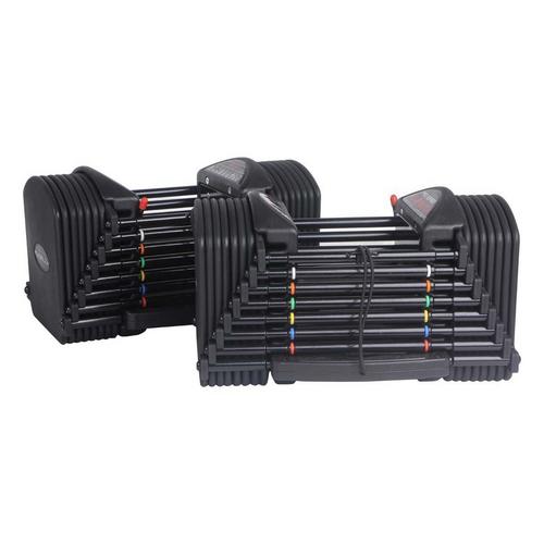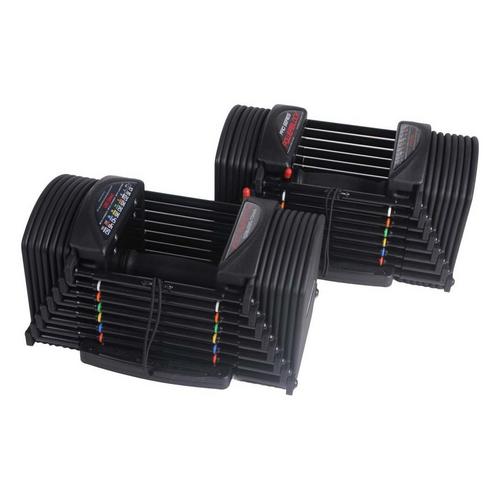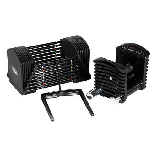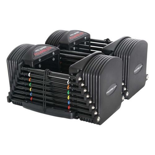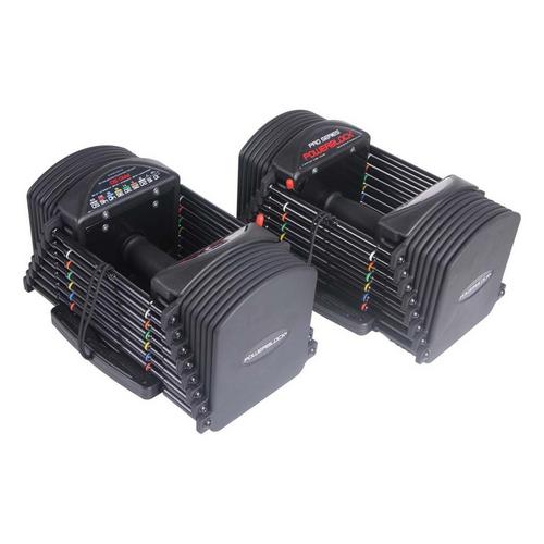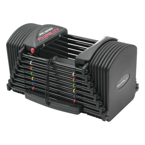 Compact, Durable. If you’re looking for a way to save space, pick up a pair of Pro 50 adjustable dumbbells. With a compact 13” x 7” design, the Pro 50 doesn’t sacrifice professional quality for size—the perfect balance between saving space and high-intensity workouts. With a weight range of 5-50 lbs, replace 19 traditional dumbbell pairs and 1045 lbs of dumbbells. Reduce the clutter, and use your Pro 50s with compatible Pro Series Attachments to further enhance your workout experience. Most adjustable dumbbells require a base stand for changing weights. This can make moving the weight stack a long process, and take up more space. With PowerBlock adjustable dumbbells, just lock in the whole weight stack with the magnetic selector pin and you can move the entire set—no moving or storing an extra base stand. Dumbbells are a high-quality build and finished with a black urethane seal. This along with the tapered v-shaped weight plates helps prevent sliding and rolling.