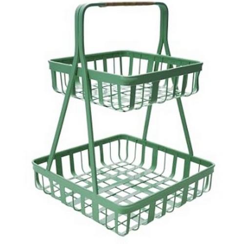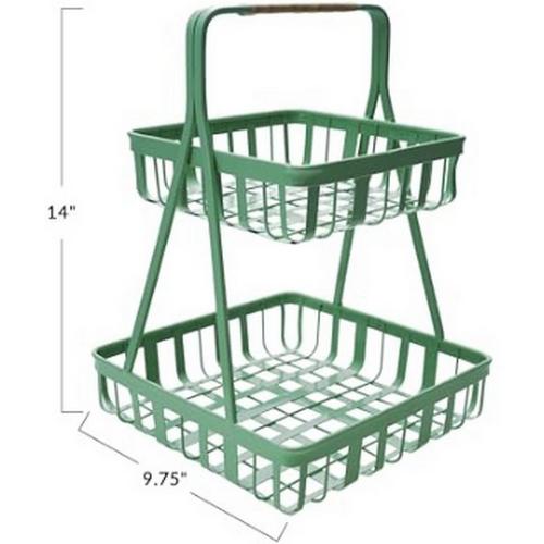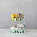 Creative Co-Op Decorative Blue Metal 2-Tier Tray with Rattan Wrapped Handle