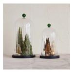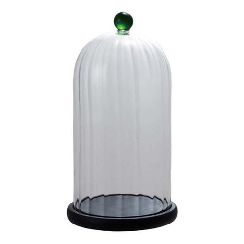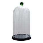 Creative Co-Op Decorative Glass Fluted Cloche with Green Knob & MDF Base