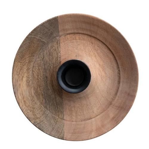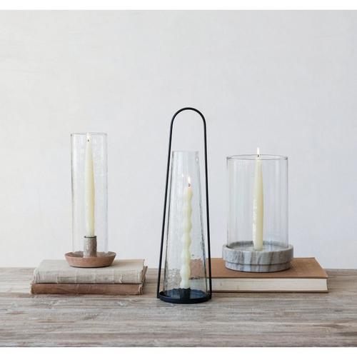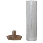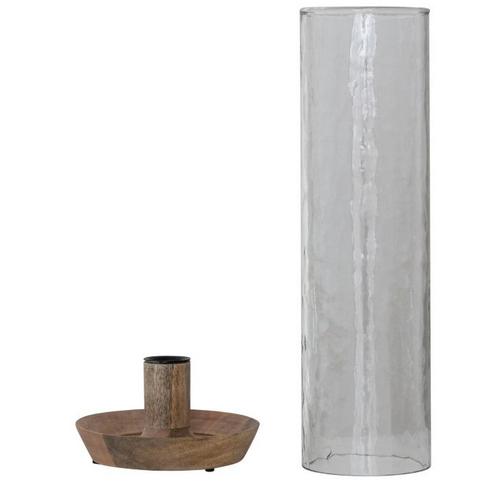Creative Co-Op Mango Wood Taper Holder with Hammered Glass Hurricane
