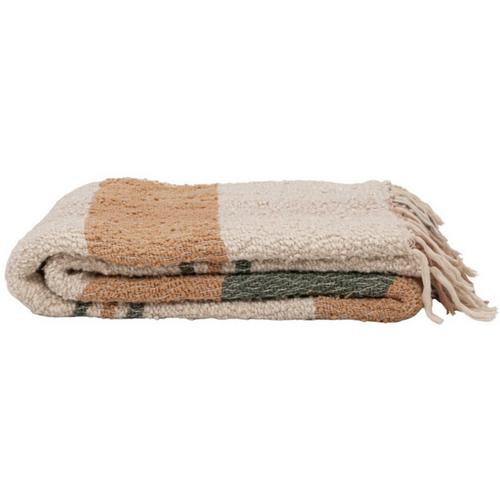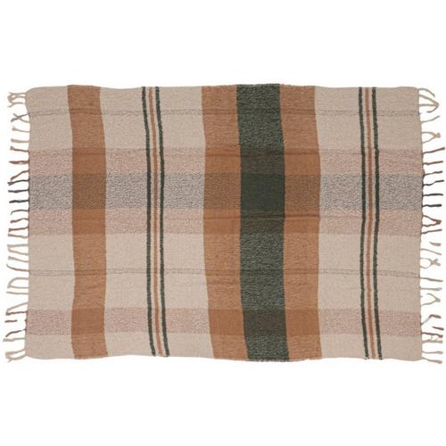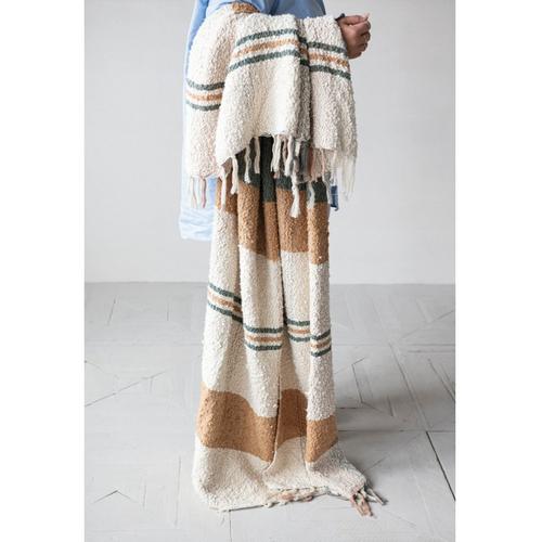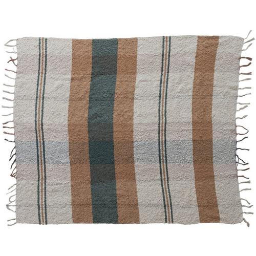Creative Co-Op Hand-Woven Cotton Slub Striped Throw with Fringe