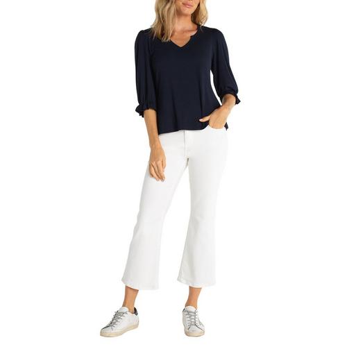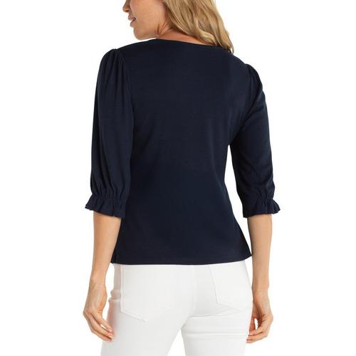Women's Liverpool Los Angeles Ruffle Detail 3/4 Sleeve Notch Neck Shirt