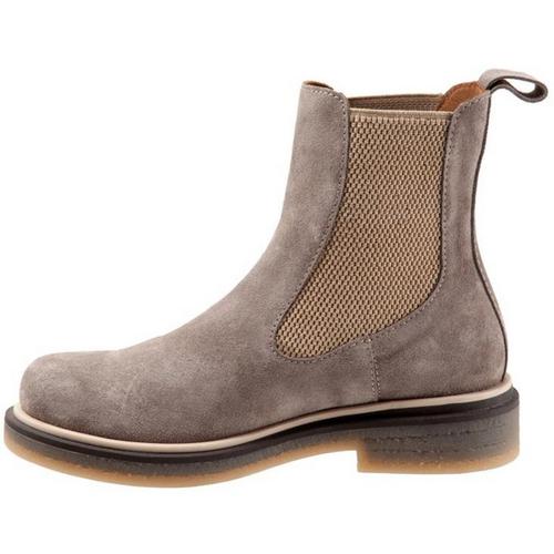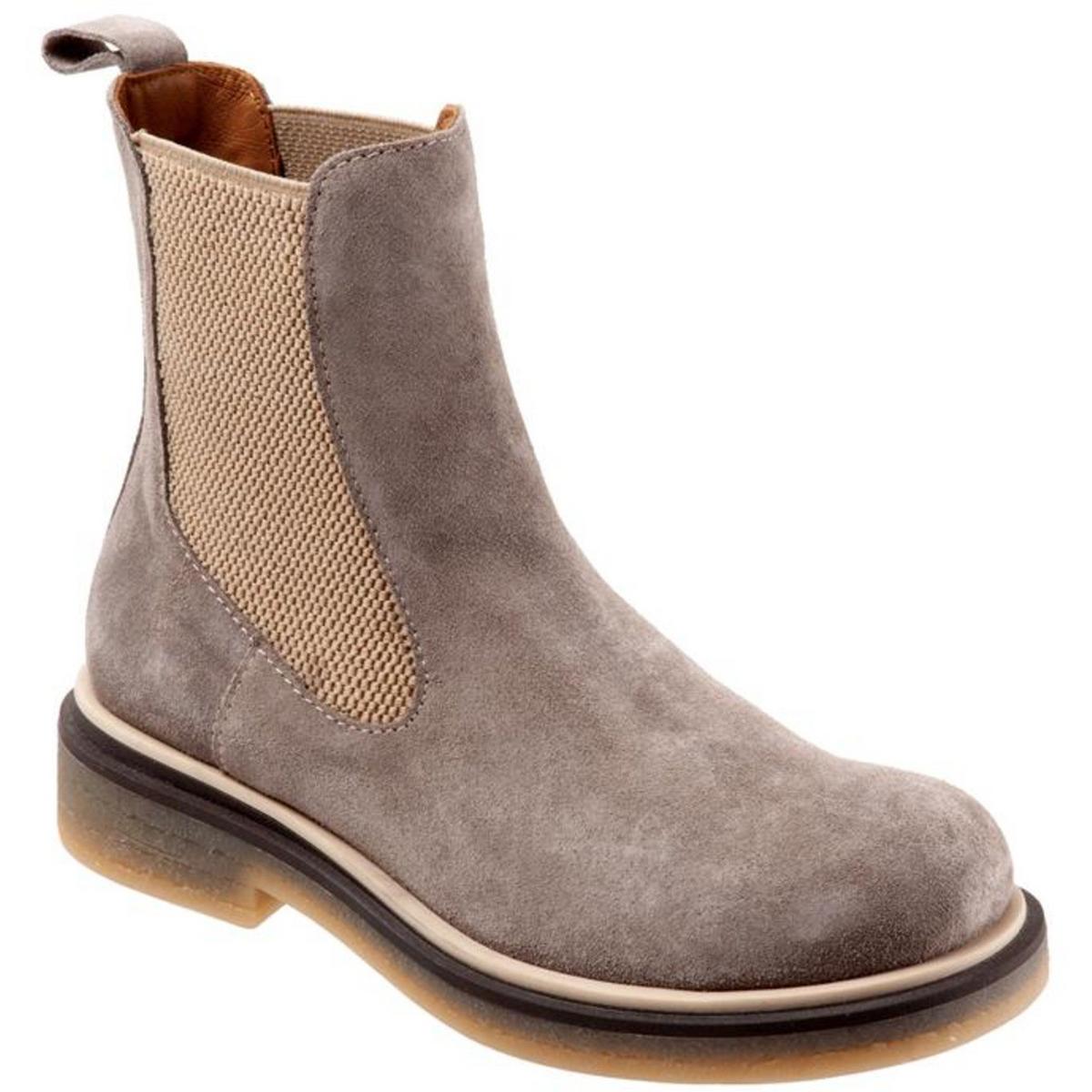 Suede leather uppers combine with Chelsea style in the Wanda boot that also features a thick sole and pull tab.