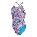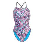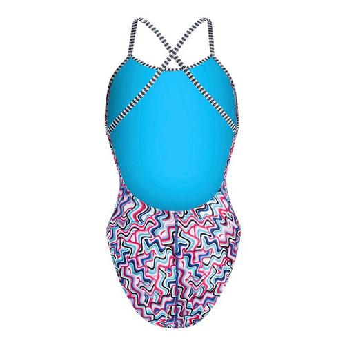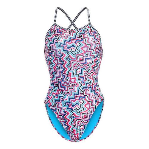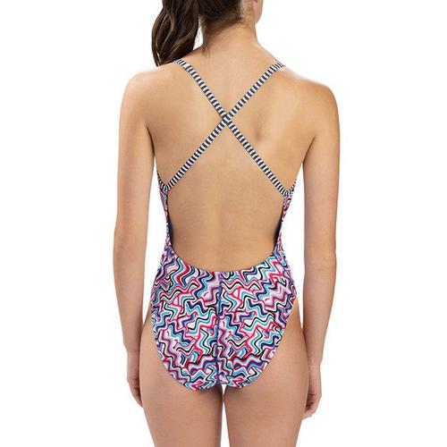 Dive into style and performance with the Women's Dolfin Print Diver Back One Piece Swimsuit. Crafted from high-quality, chlorine-resistant fabric, this swimsuit ensures durability and long-lasting vibrancy, perfect for regular swimmers. The unique diver back design provides optimal support and freedom of movement, allowing you to glide through the water with ease. With its eye-catching print and flattering fit, this swimsuit is not just functional but also a fashion statement, making it an ideal choice for both competitive and recreational swimmers. Elevate your swim wardrobe with Dolfin's blend of comfort, style, and performance.