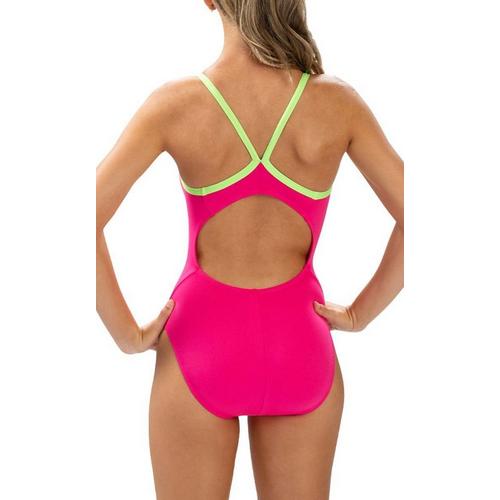 Dive into style and comfort with the Women's Dolfin Uglies Print V Back One Piece Swimsuit. This eye-catching swimsuit features vibrant, playful prints that ensure you stand out at the pool or beach. Made with high-quality, durable fabric, it offers excellent stretch and shape retention, making it perfect for both competitive swimming and leisurely dips. The V-back design not only provides a secure fit but also enhances your range of motion, allowing you to swim with ease. With its blend of fashion and functionality, this swimsuit is a must-have addition to your swimwear collection.